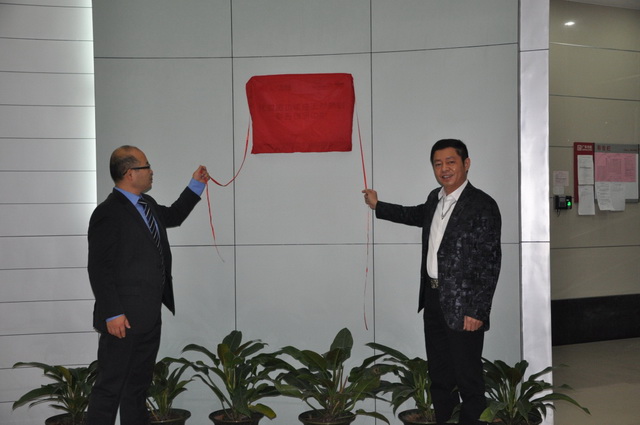 名臣健康用品股份有限公司董事长陈勤发与德国德之馨股份公司市场总监梅鹤祥主持揭牌仪式